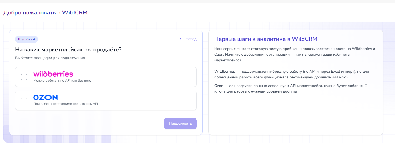 Шаг 2. Выберите маркетплейс, финансовые данные которого вы хотите анализировать.