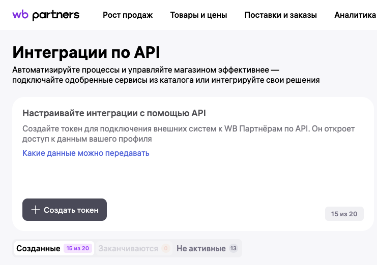 1) Перейдите в раздел "Интеграции по API"