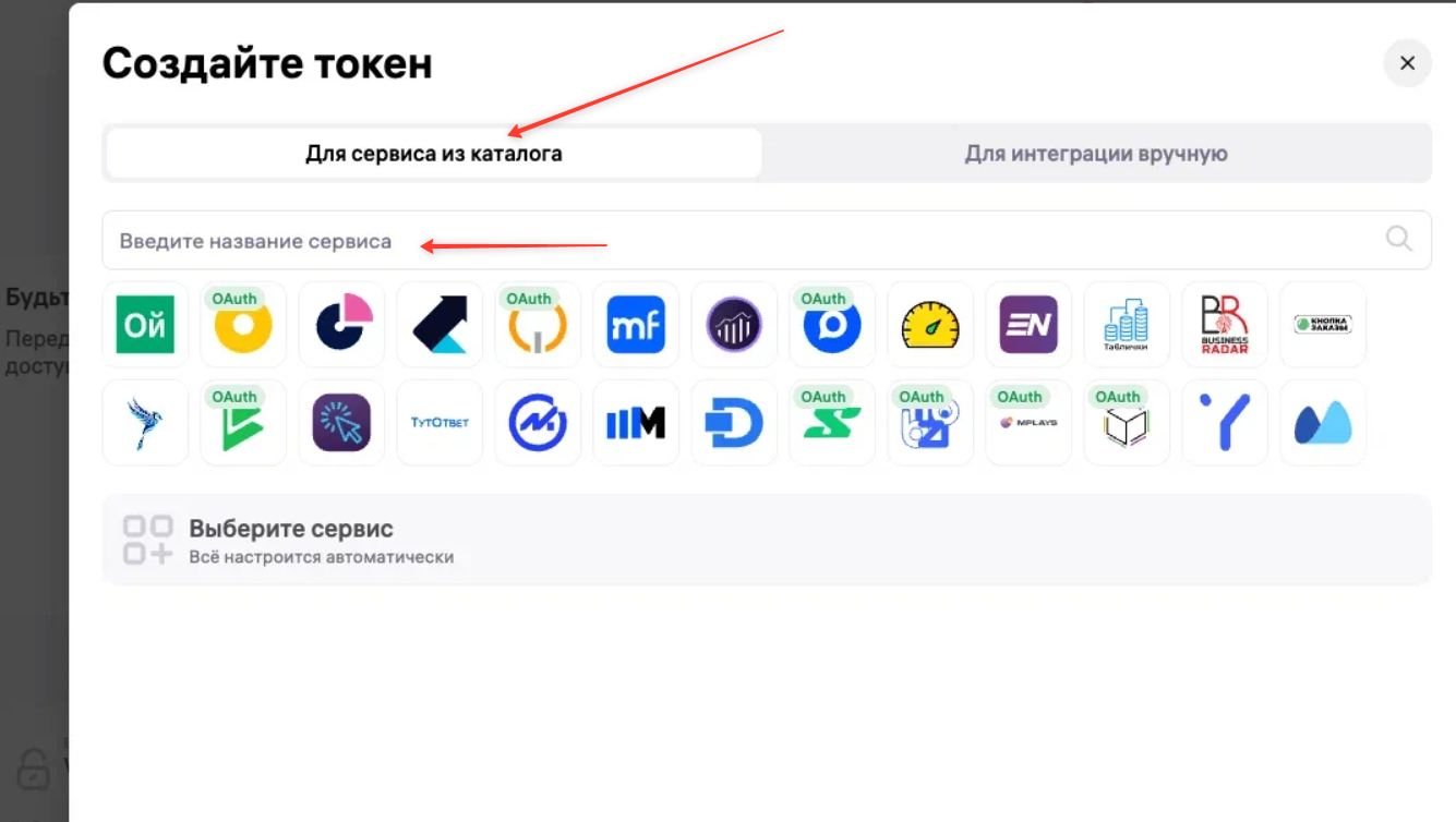 Далее появится окно с токеном, нужно его скопировать и вставить в наш сервис.