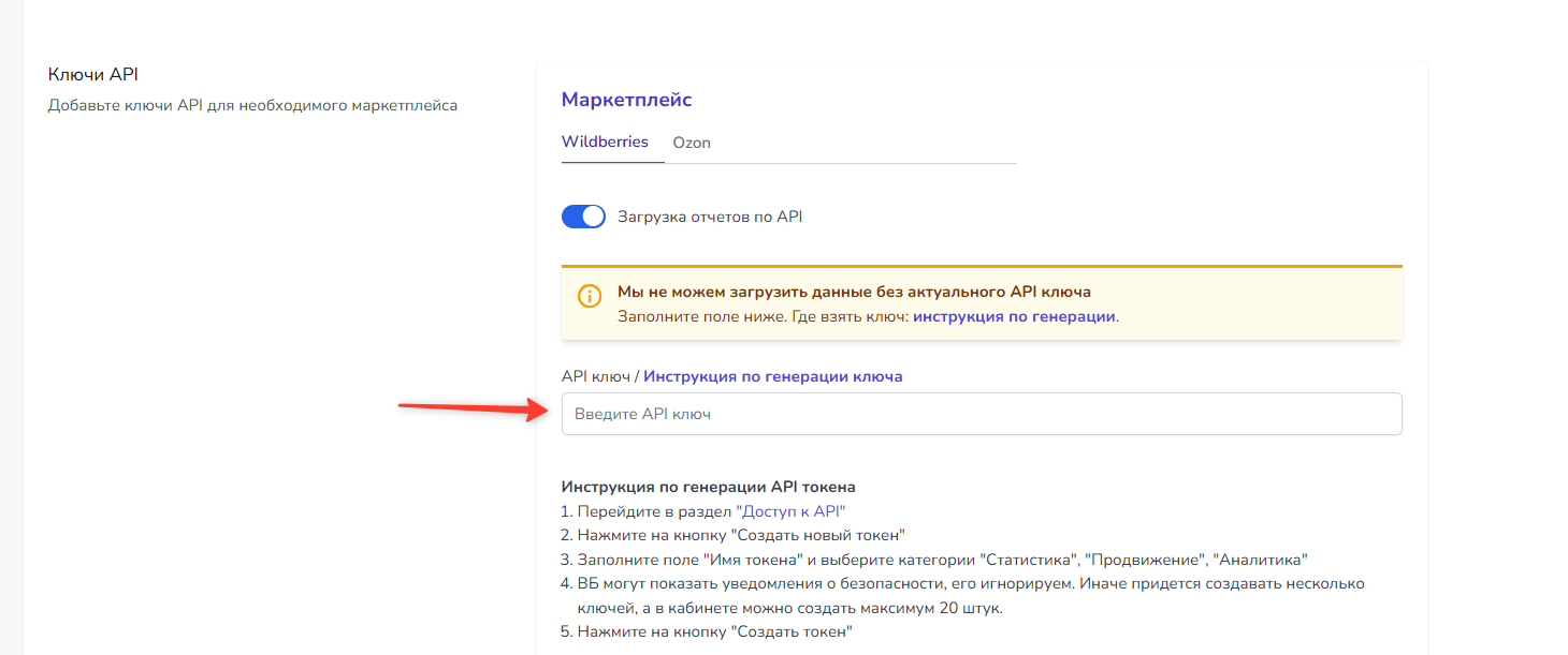 6) Добавьте ключ на сервис WildCRM в разделе "Настройки"- "Организация"