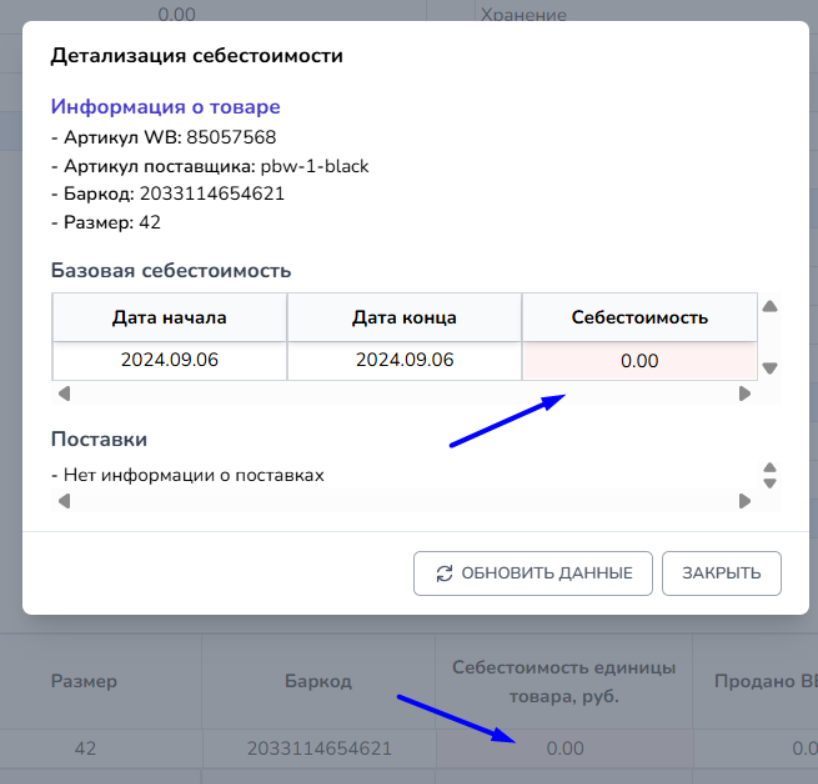 Для решения данного вопроса напишите в чат период отчета и артикул и Баркод товара, для которого не получается указать себестоимость.