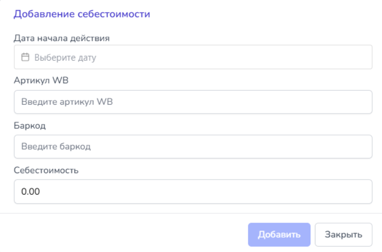 ✔ Для одного артикула можно добавить несколько значений себестоимости с разными датами