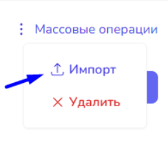 В разделе "Базовая себестоимость" нажмите "Массовые операции" → "Импорт"