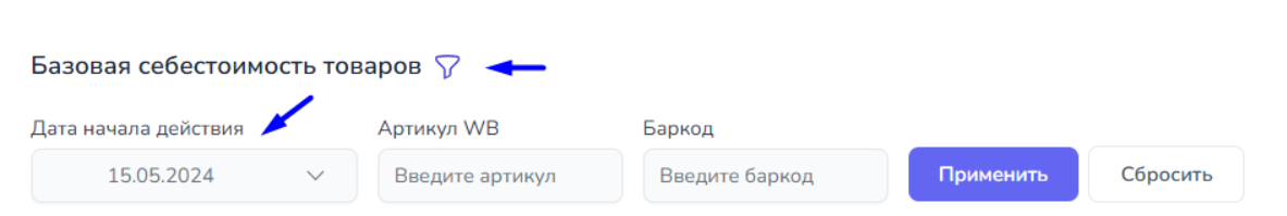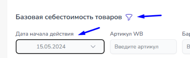 В фильтрах выберите: дату начала действия, от которой вы хотите удалить себестоимость товаров.
