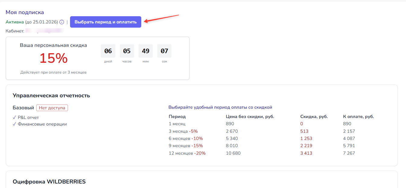 Нажмите кнопку "Выбрать период и оплатить" на странице
