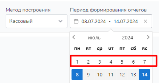 Например: Если вы строите отчет с 8 по 14 июля, система возьмет данные, за период с 1 по 7 июля.