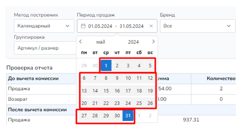Например: Вы строите отчет с 1 по 31 мая. Система возьмет данные только за указанный период из отчетов.
