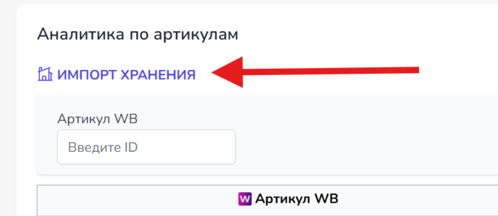В разделе Аналитика по артикулу вы можете загрузить Отчет по номенклатурам (платное хранение) нажав на кнопку "Импорт хранения".