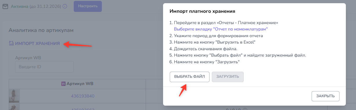 Рассказываем, как пользователям, которые работают на сервисе без API загрузить в отчеты хранение по артикулам.
