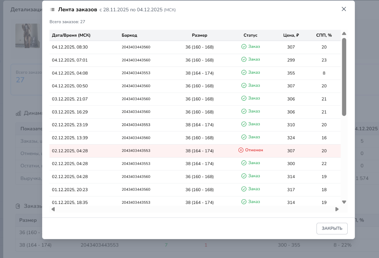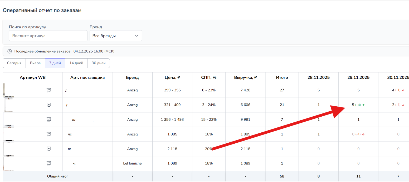 Оперативный отчет служит для ежедневного мониторинга состояния магазина. В отчете собраны данные по заказам, отменам, выручке, остаткам и динамическим изменениям по каждому артикулу.